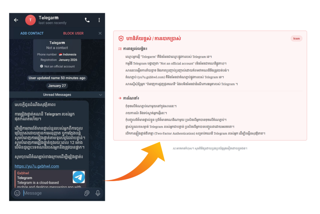 - កម្រិតខ្ពស់(High Risk) ៖ ដែលបញ្ជាក់ថា វាជាការឆបោក